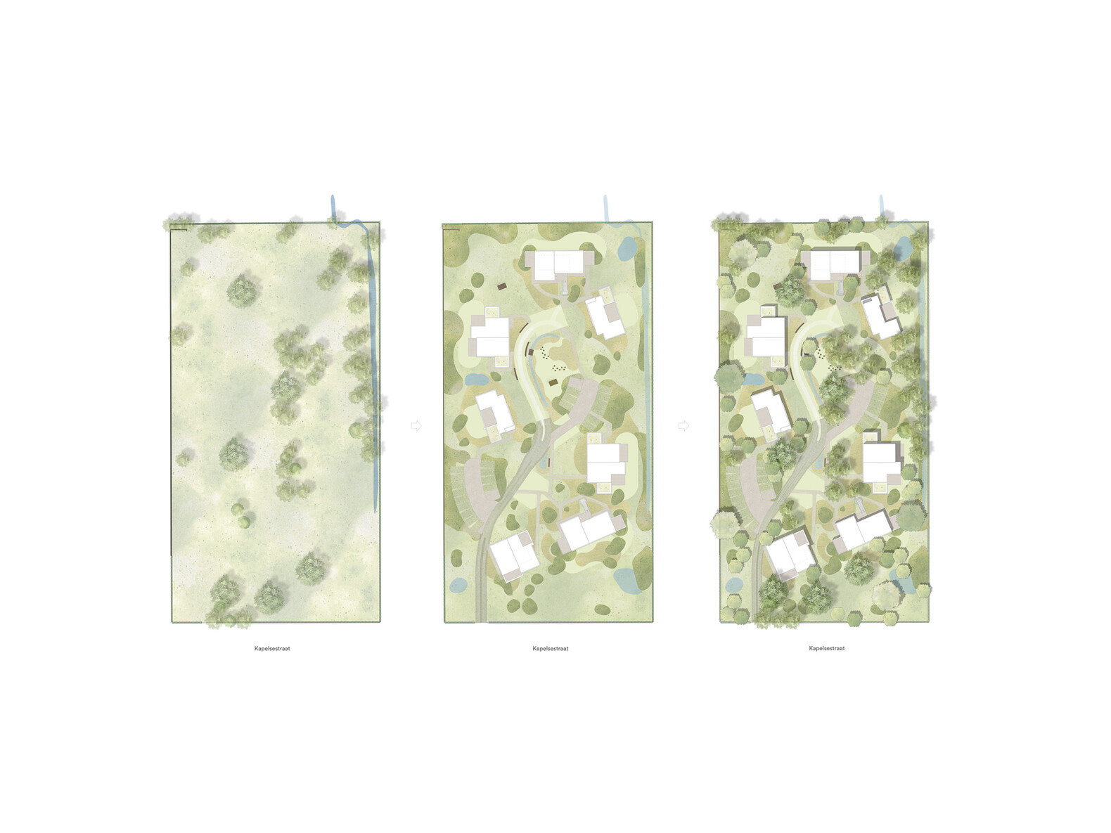 Binnen de ruimtelijke context staat het verdichten van twee percelen met nieuwe innovatieve en duurzame woontypologieën centraal, naadloos geïntegreerd in de bestaande groene structuur. Het project bevindt zich binnen een bouwblok met hoofdzakelijk open bebouwing, met name villa's. De invulling van het project is een antwoord op de zachte overgang naar het dorpscentrum Kapellen met appartementen en rijwoningen.