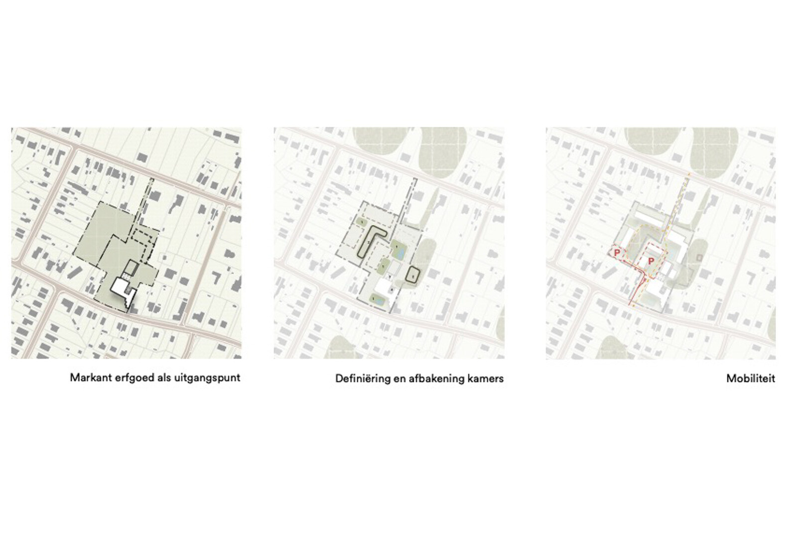 Met de historische inplanting als basis werden volgende collectieve kamers afgebakend:
