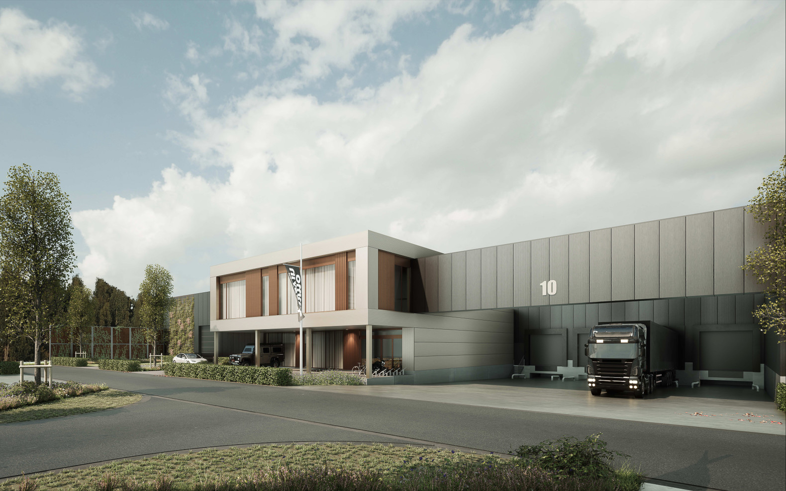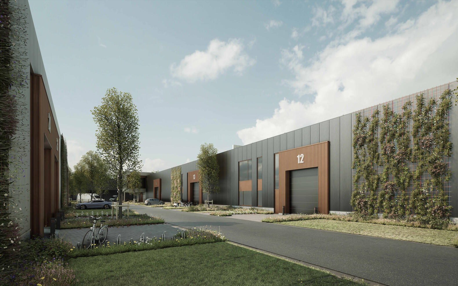 Om de impact van het industriegebied op de woningen te minimaliseren wordt er gestart vanuit het concept om de gebouwen van het bedrijvenpark aan de buitenranden te plaatsen en de circulatie aan de binnenzijde te voorzien. Het industrieproject is zo in zichzelf gekeerd en de gebouwen aan de buitenranden dienen als extra buffer, bijkomend op de groenbuffer naar de woningen toe. De groenbuffer is robuust en niet versnipperd, zodat de ecologische bijdrage voor gans de omgeving wordt verzekerd.