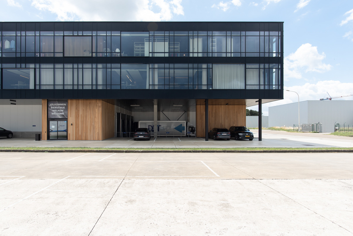 Het project onderscheidt zich door de creatieve aanpak van deze uitdagingen. Kantoren werden verheven naar de eerste en tweede verdieping, waardoor ruimte ontstond voor efficiënte laad- en loskades. Ruime patioterrassen werden geïntegreerd om een aangename werkomgeving te creëren en dienen als het ideale decor voor bedrijfsevenementen waar de nieuwste kledingcollectie wordt gepresenteerd. Het raster van de gordijngevel werd ontworpen volgens de lijnen van een weefpatroon: een speelse verwijzing naar textiel als basisproduct van het bedrijf.