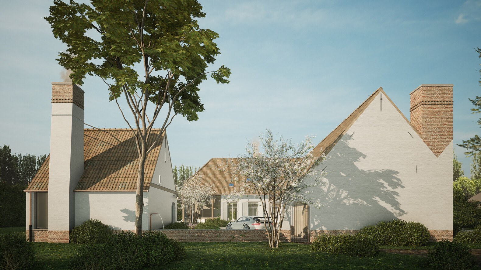 De woning biedt een eigentijdse interpretatie van een gezinsvriendelijke leefomgeving waar connectie centraal staat, zoals die ook gekend is in het stedenbouwkundig figuur van een vierkantshoeve. De binnenkoer fungeert als verbindend element tussen de gebouwen. De specifieke inplanting zorgt voor privacy en een serene, omsloten buitenruimte. Het resultaat is een woning die niet alleen functioneel is, maar door zijn tijdloze materialisatie en klassieke architectuur integreert in de groene context van de straat. Uitgekiende geveldetaillering geeft de woning de allure die ze verdient.