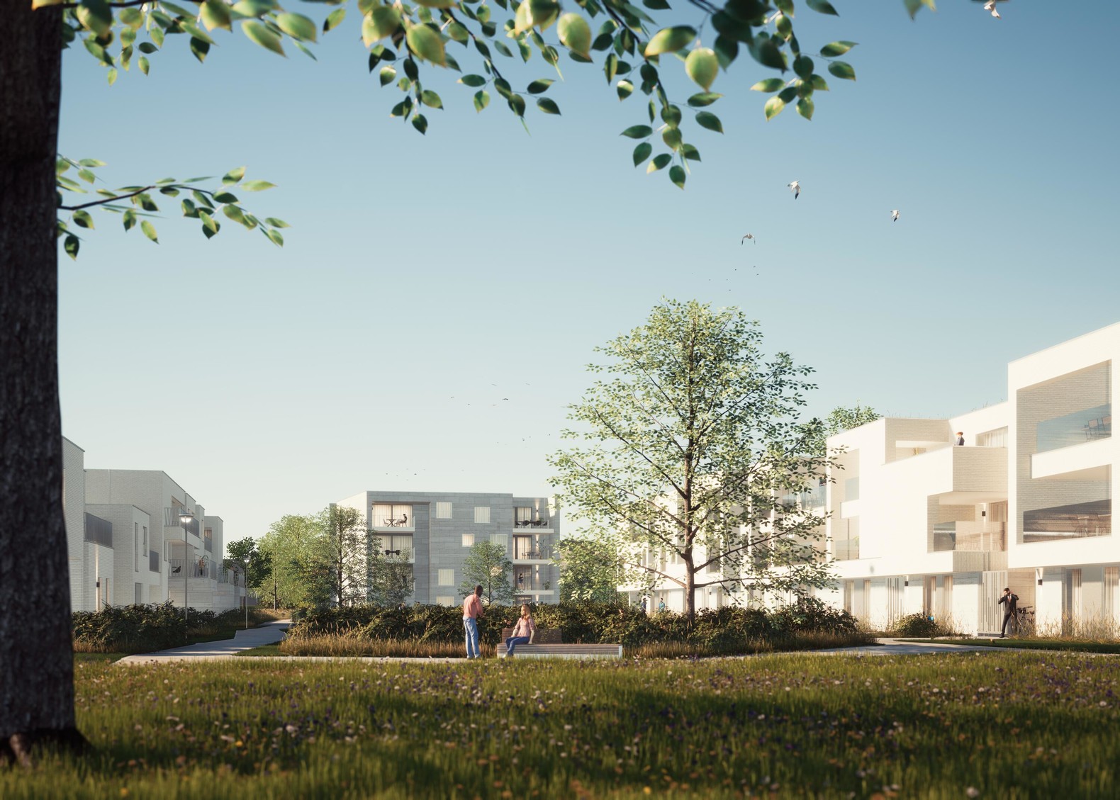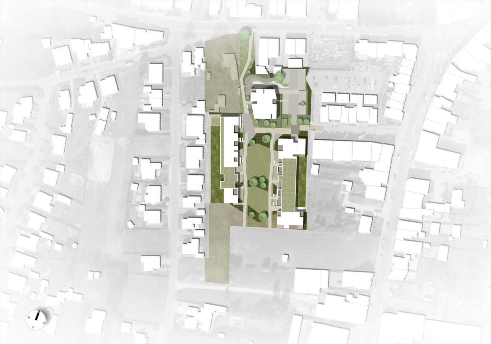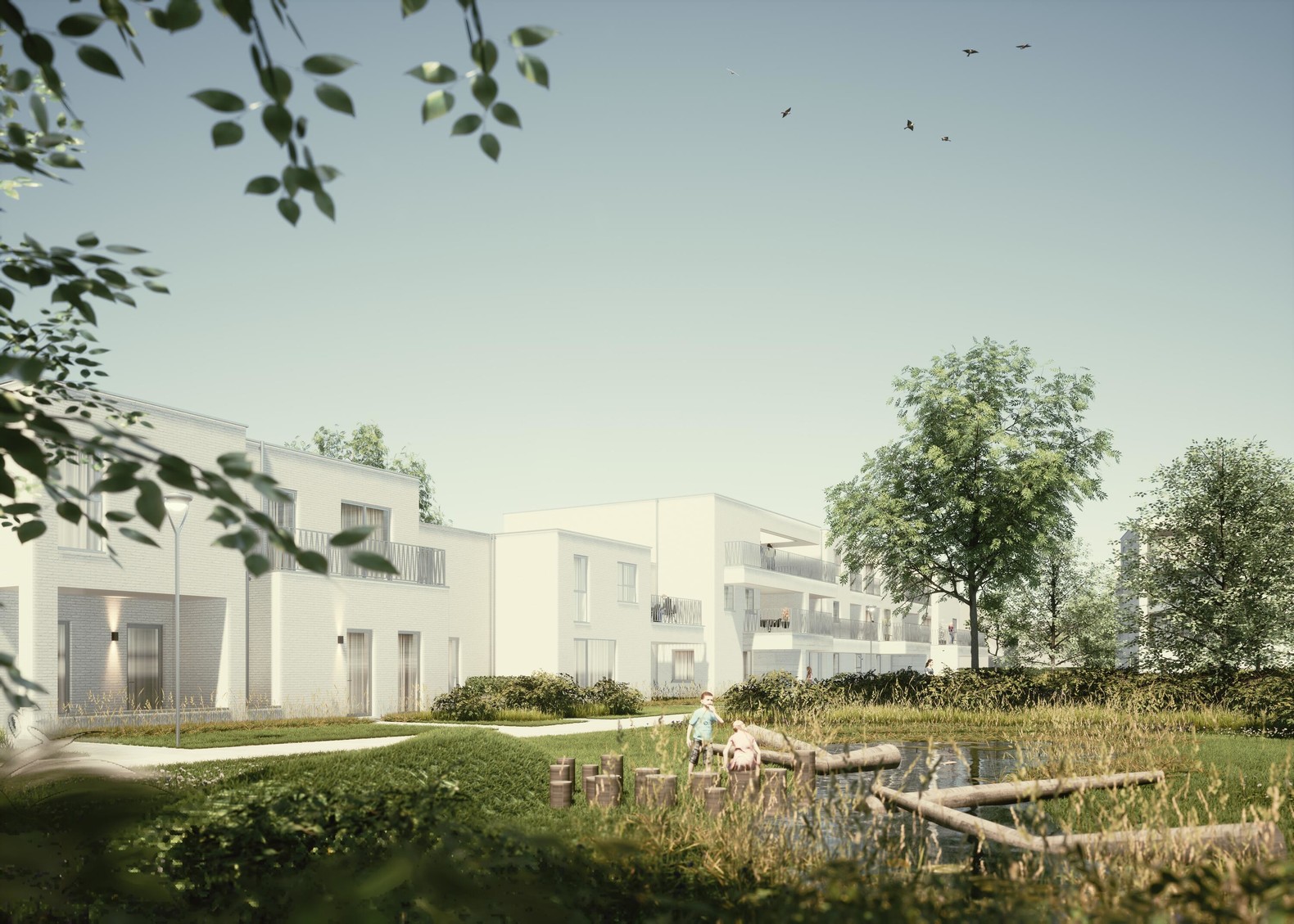 Rond dit publiek toegankelijk buurtpark zijn de bouwvolumes zodanig geconfigureerd dat nagenoeg alle woonentiteiten zicht hebben op het centraal groen park. De doordachte variatie in volumetrie van 2, 3 en 4 bouwlagen zorgt ervoor dat dit stedelijk inbreidingsproject zich volledig inpast in het ruimere bouwblok. Door de mix van kwalitatieve eengezinswoningen, appartementen en polyvalente ruimtes zullen uiteenlopende types van bewoners in deze groene luwteplek een plaats krijgen.