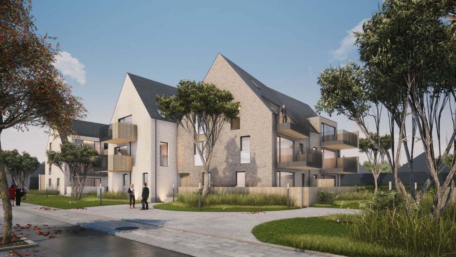 De volumes verspringen speels t.o.v. elkaar en er werd rekening gehouden met doorzichten naar de achtergelegen dorpskern en dorpstuin. Door compacter te bouwen, heeft het aangevraagde project een veel beperktere voetafdruk dan de vergunde verkaveling. Door een aanzienlijke oppervlakte van het perceel af te staan aan het openbaar domein, kan de huidige functie als dorps- en kermisplein behouden blijven.