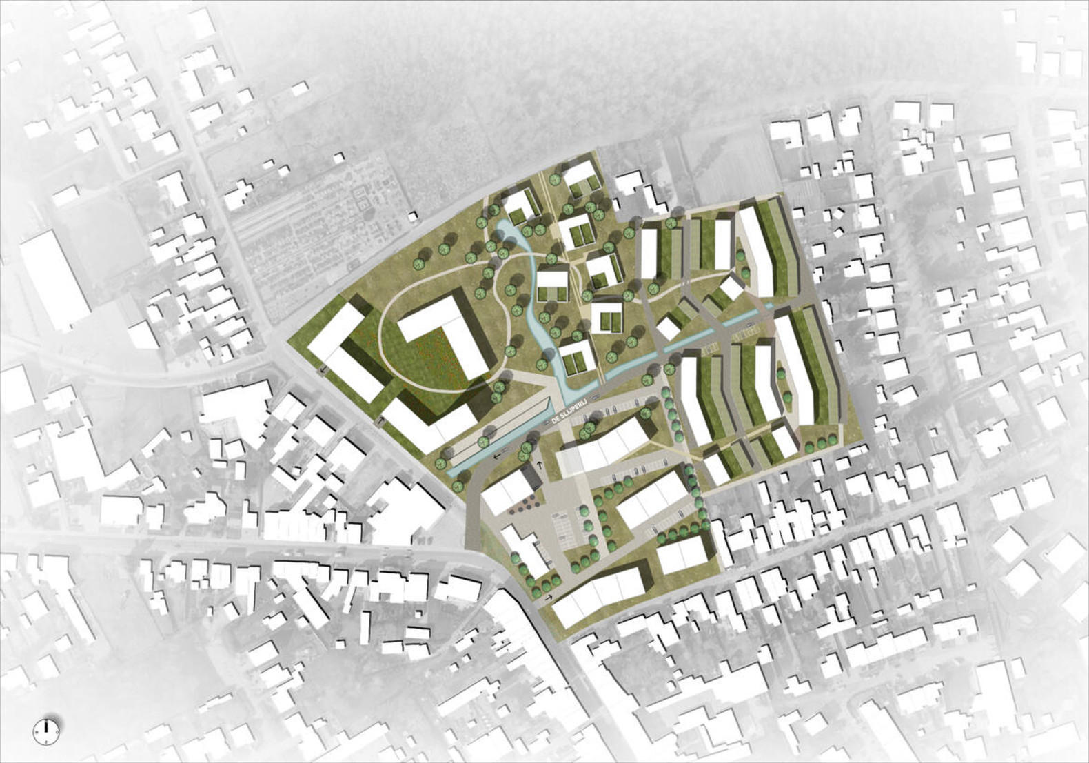 Een initiatief tot herbestemming van enorme schaal binnen de gemeente Grobbendonk. De historisch gegroeide industriële site van de grootste werkgever binnen de gemeente maakt in dit wedstrijdontwerp plaats voor een woonproject met 6 uitdagingen.